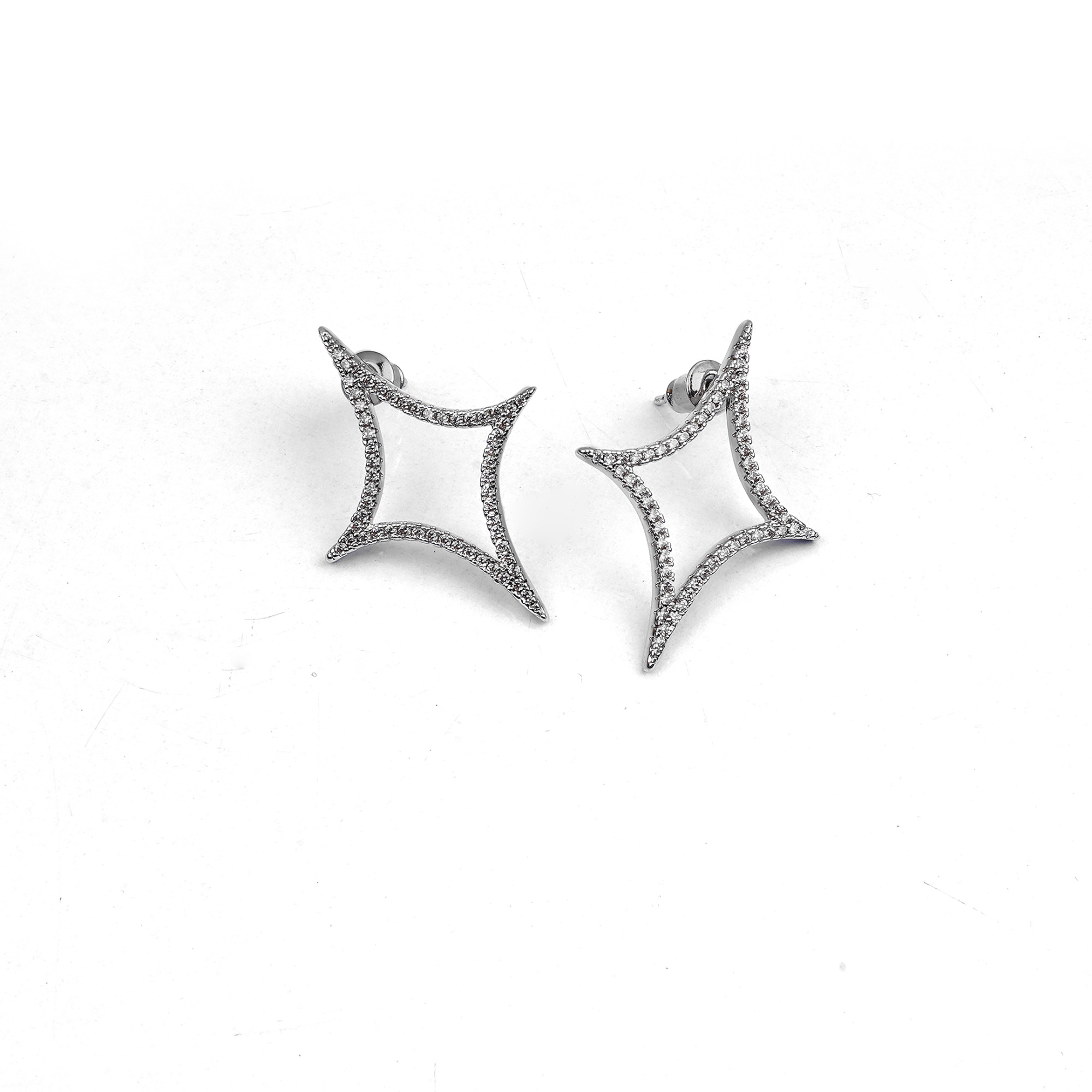 These Crystal Starburst Outline Studs are a bold and modern statement. They feature an open, edgy rhombus (kite) shape with all borders meticulously paved with sparkling micro-crystals. Perfect for bo...