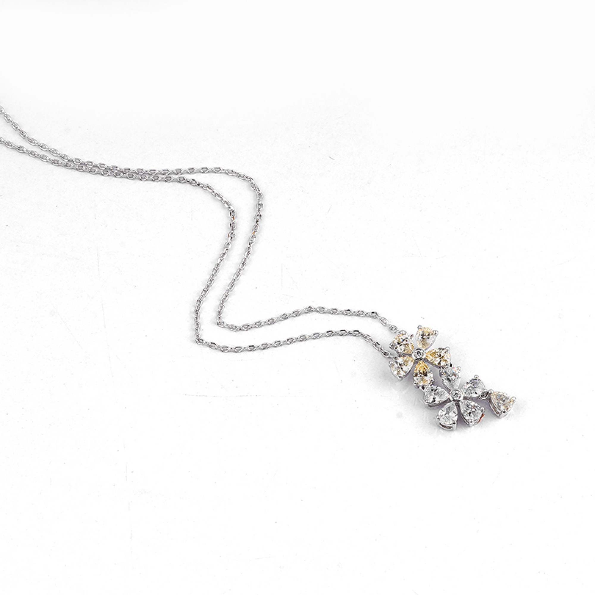 This stunning silver-tone necklace features a delicate floral cluster pendant. Each "petal" is a brilliant cubic zirconia stone, with a mix of clear and champagne colors, creating a subtle and elegant...